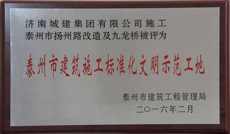 泰州市扬州路改造及九龙桥工程被评为泰州市建筑施工标准化文明示范工地