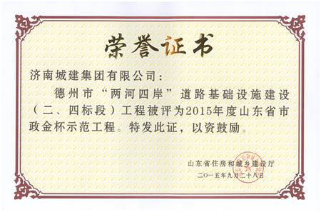 德州市两河四岸道路基础设施建设(二、四标段)工程被评为2015年度山东省市政金杯示范工程
